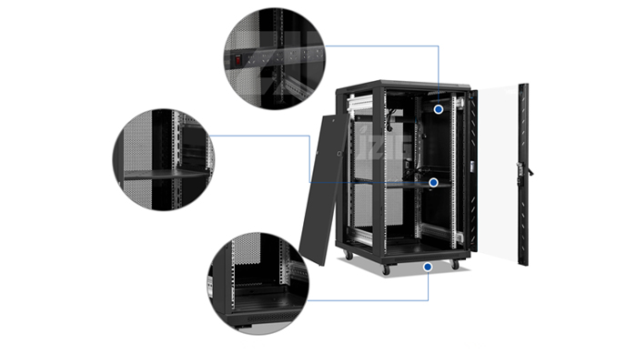 配件选型同样彰显匠心。门锁采用防撬叶片结构,配合防锈处理,不仅开关顺畅,更能有效抵御外力破坏,保障机房财物安全;散热风扇选用静音节能款,风速可根据内部温度自动调节,在高效散热的同时,运行噪音低至 45 分贝以下,营造安静的使用环境;线缆管理配件丰富,可调节理线架、束线带、出线孔防护圈等一应俱全,既避免线缆杂乱缠绕,又防止出线孔划伤线缆绝缘层,降低故障风险。